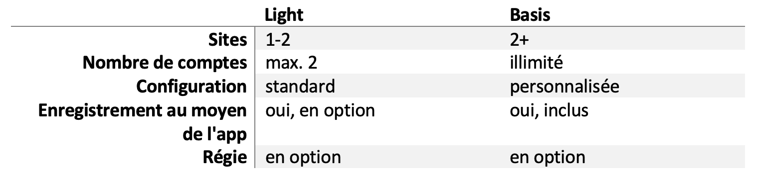 - Tableau de bord clair : aperçu direct du statut d'un ou de plusieurs sites